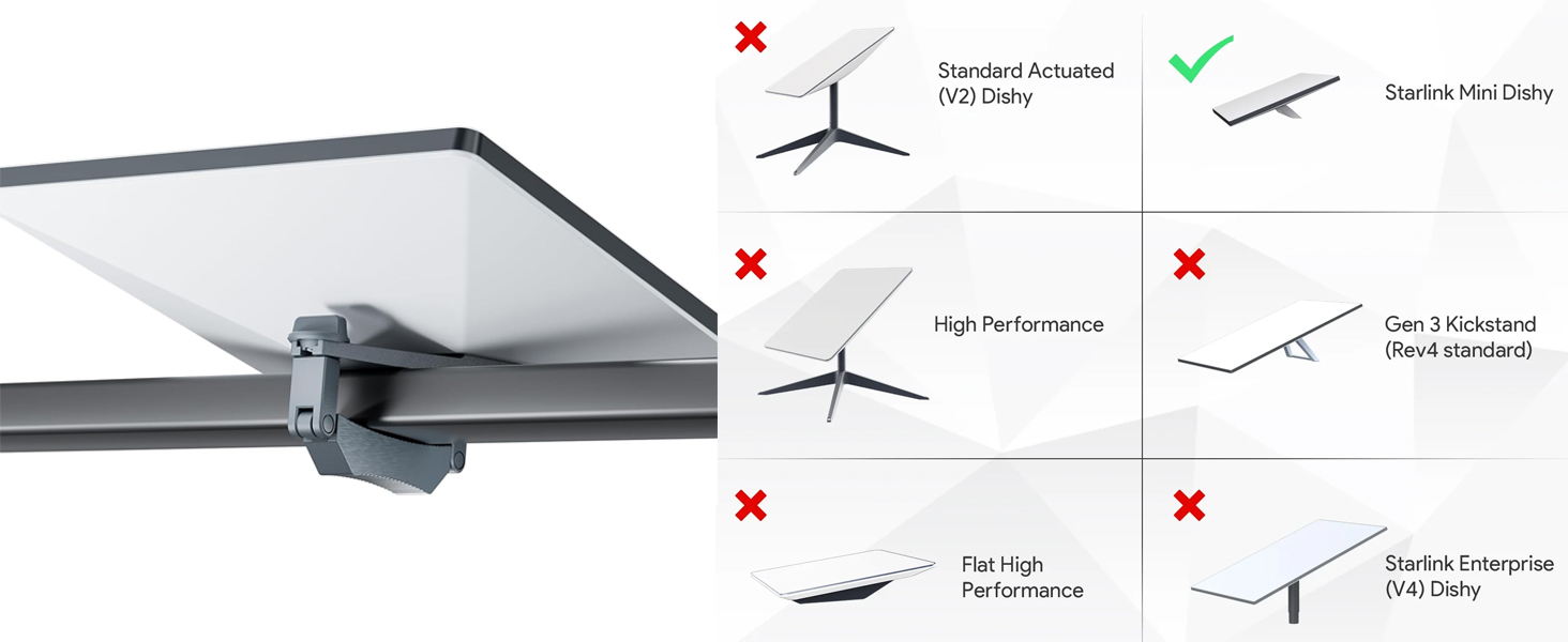 - Roof Rack Compatibility - This starlink mini car mount can be easily mounted on roof rack size of 0.48-1.25inch(13-31mm), pole diameter from 1.1inch to 1.7inch(29-43mm). It is held in place by 2 strong screws. (NOT APPLY FOR ROUND PROFILE BARS)