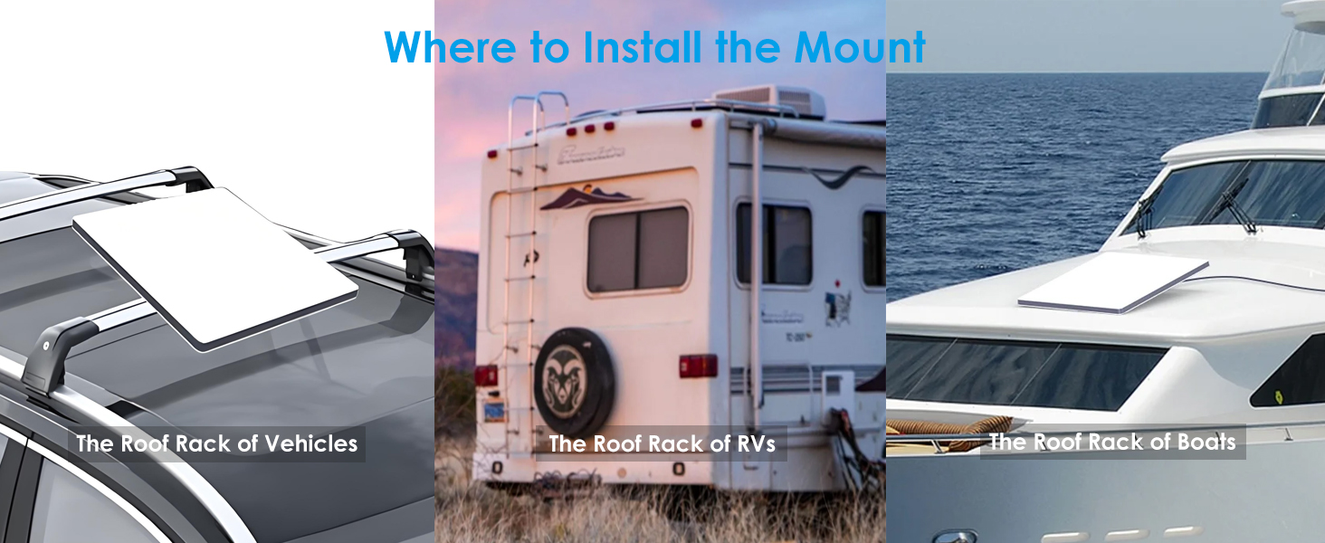 - Easy to Install – Fasten the handle on the aluminium bracket by the 2 screws, assembly the bracket on the Starlink MINI dish, mount the mini mount on the roof of RV/Cars/Boats.